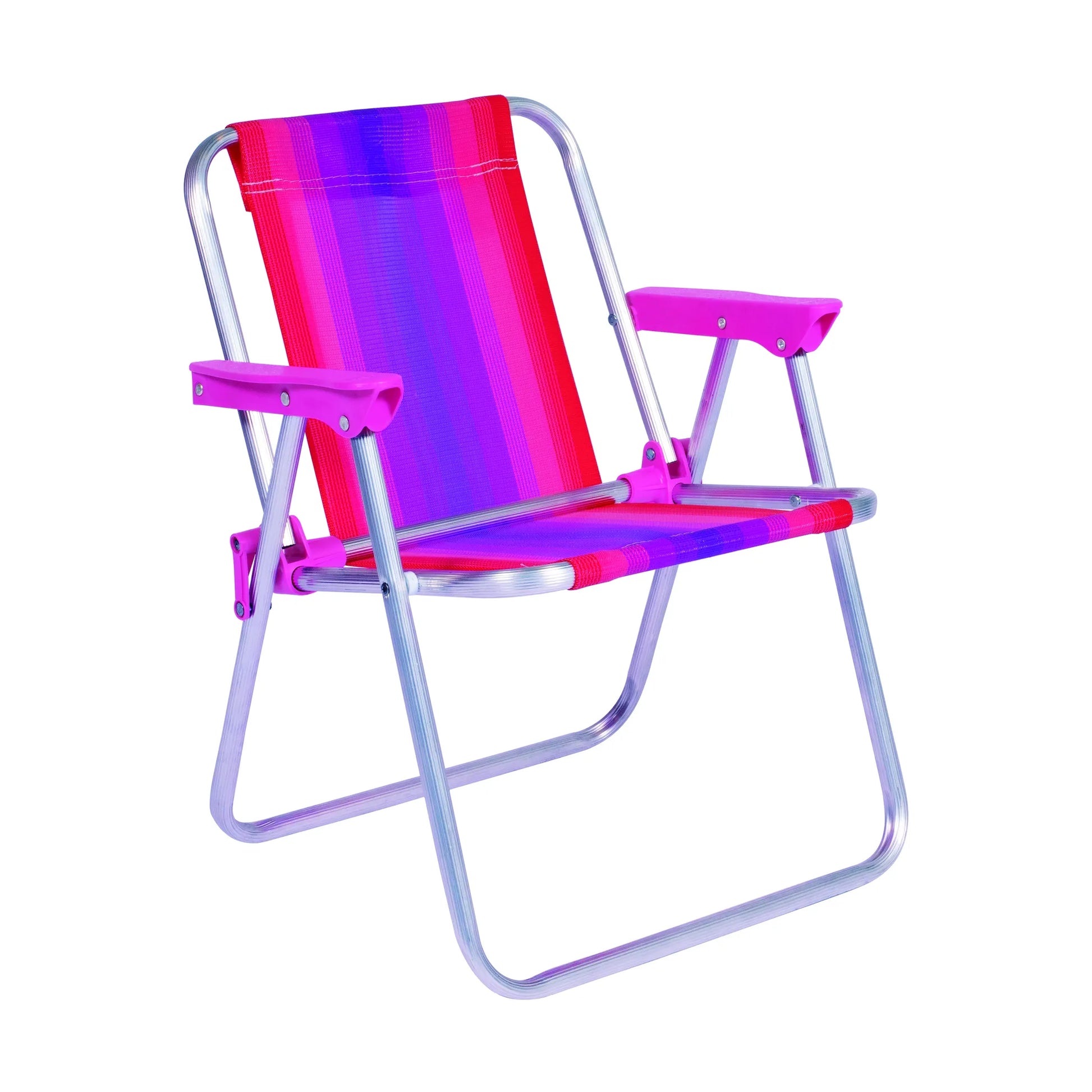 Estructura de aluminio. Apoya brazos plasticos Partes plásticas en polipropileno. Tela 100% polietileno. Soporta hasta 30 kg.